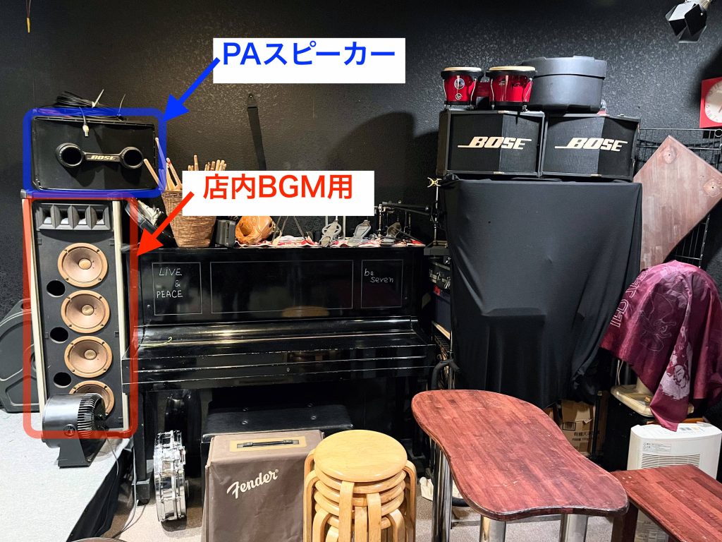 PAスピーカーは上に乗っかってるBOSEのみ。